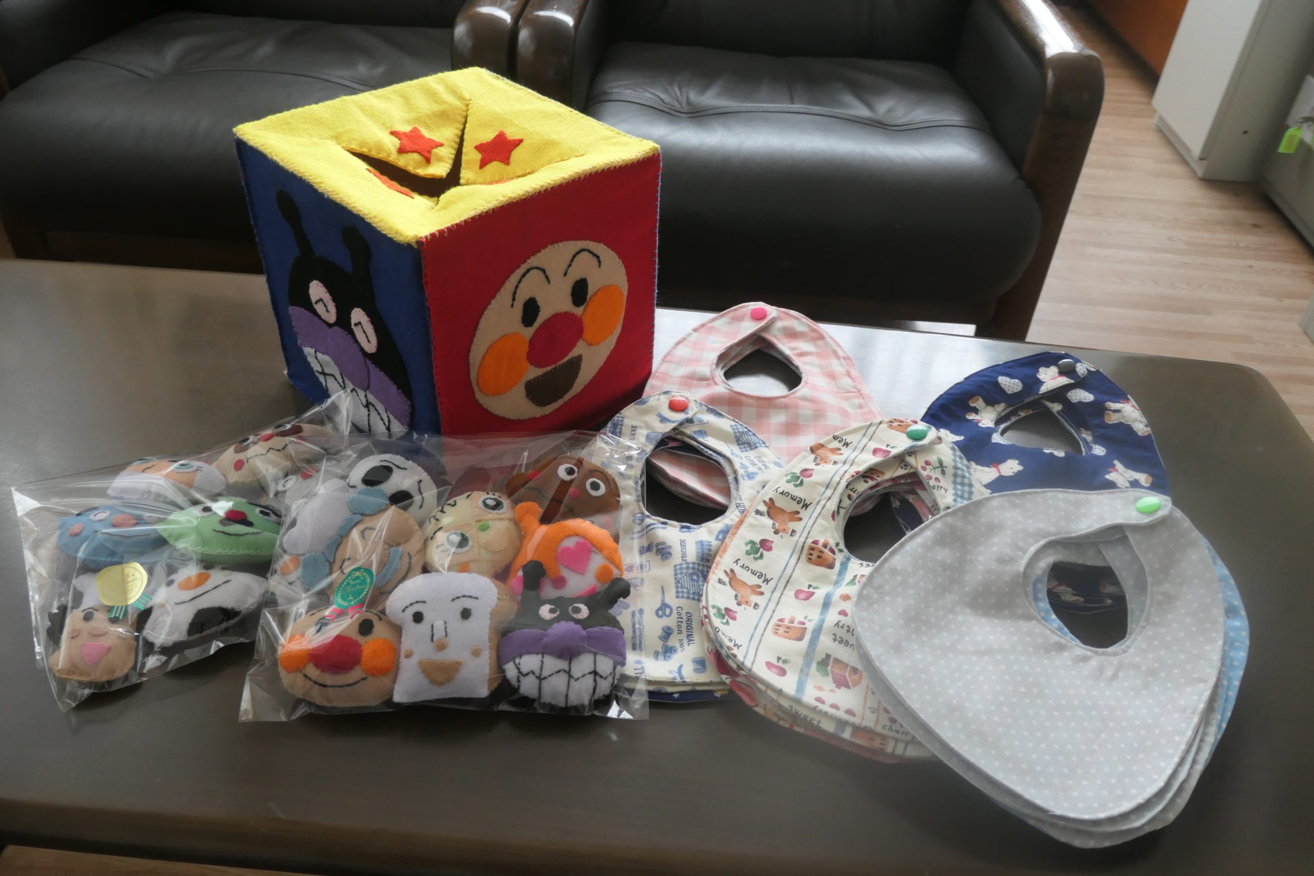 末日聖徒イエス・キリスト教会の皆さまより、手作りのピアノカバー・布おもちゃ・スタイをいただきました!