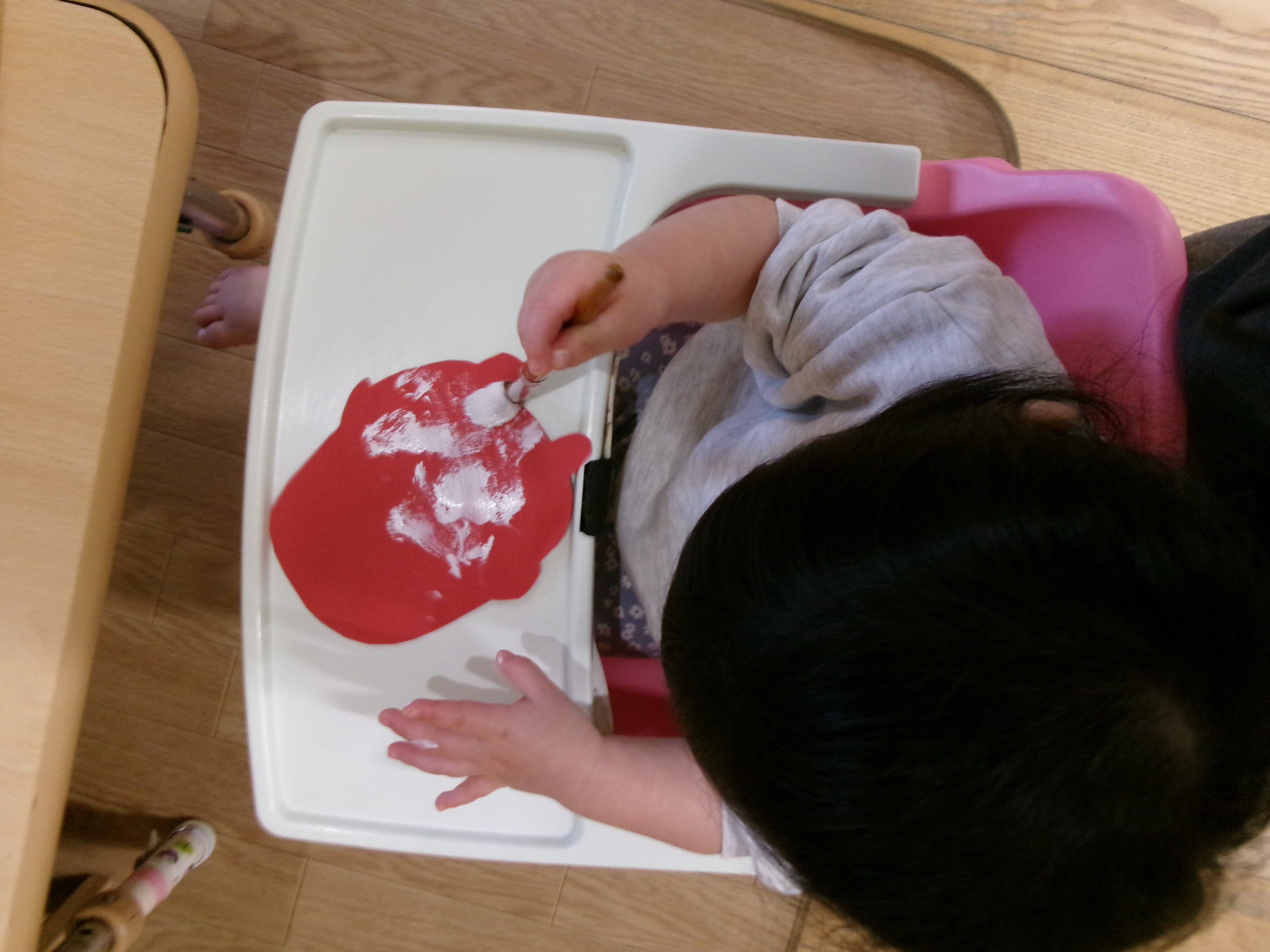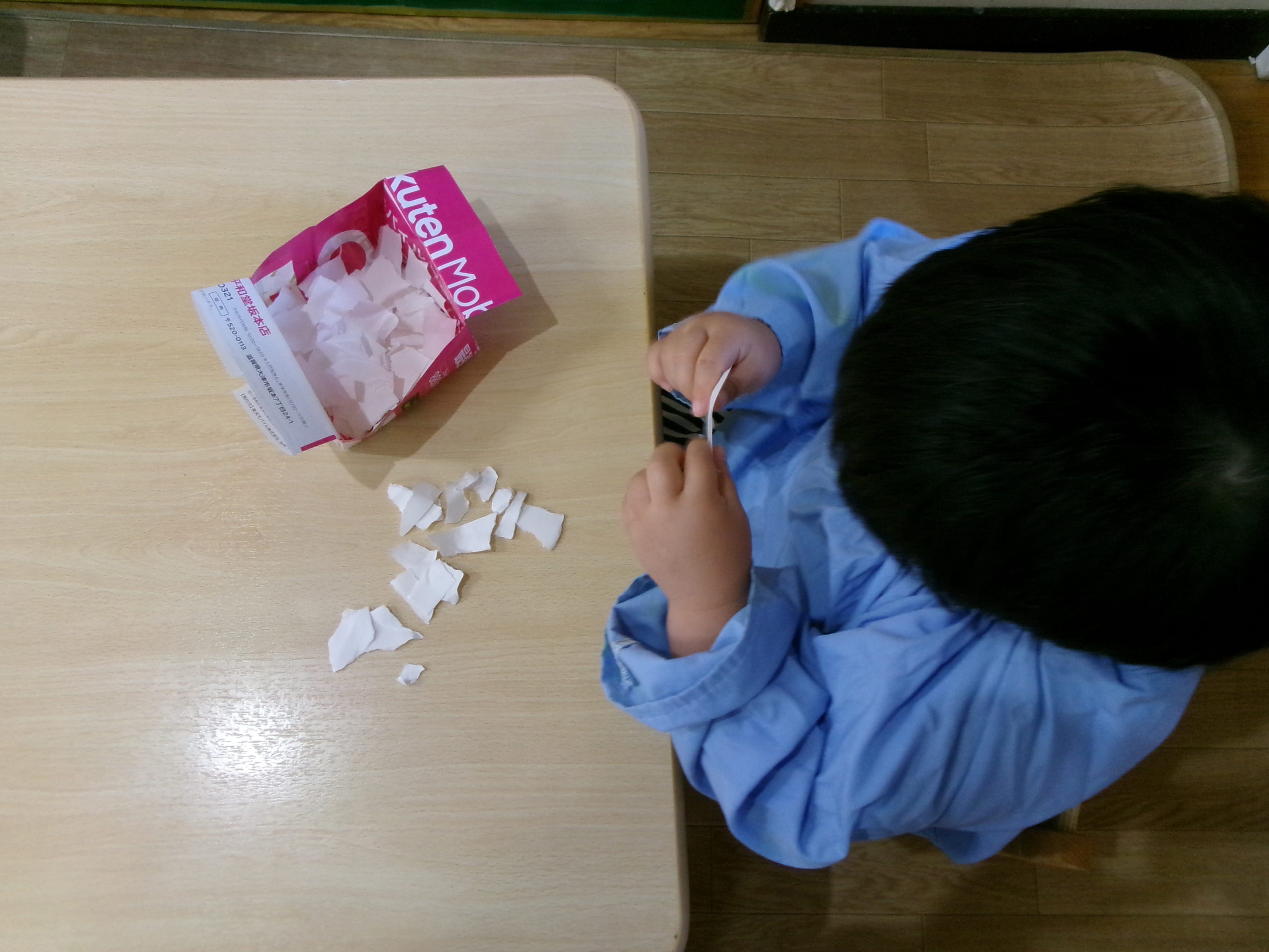 白い画用紙をビリビリ破って感触を楽しむ姿も見られました😊