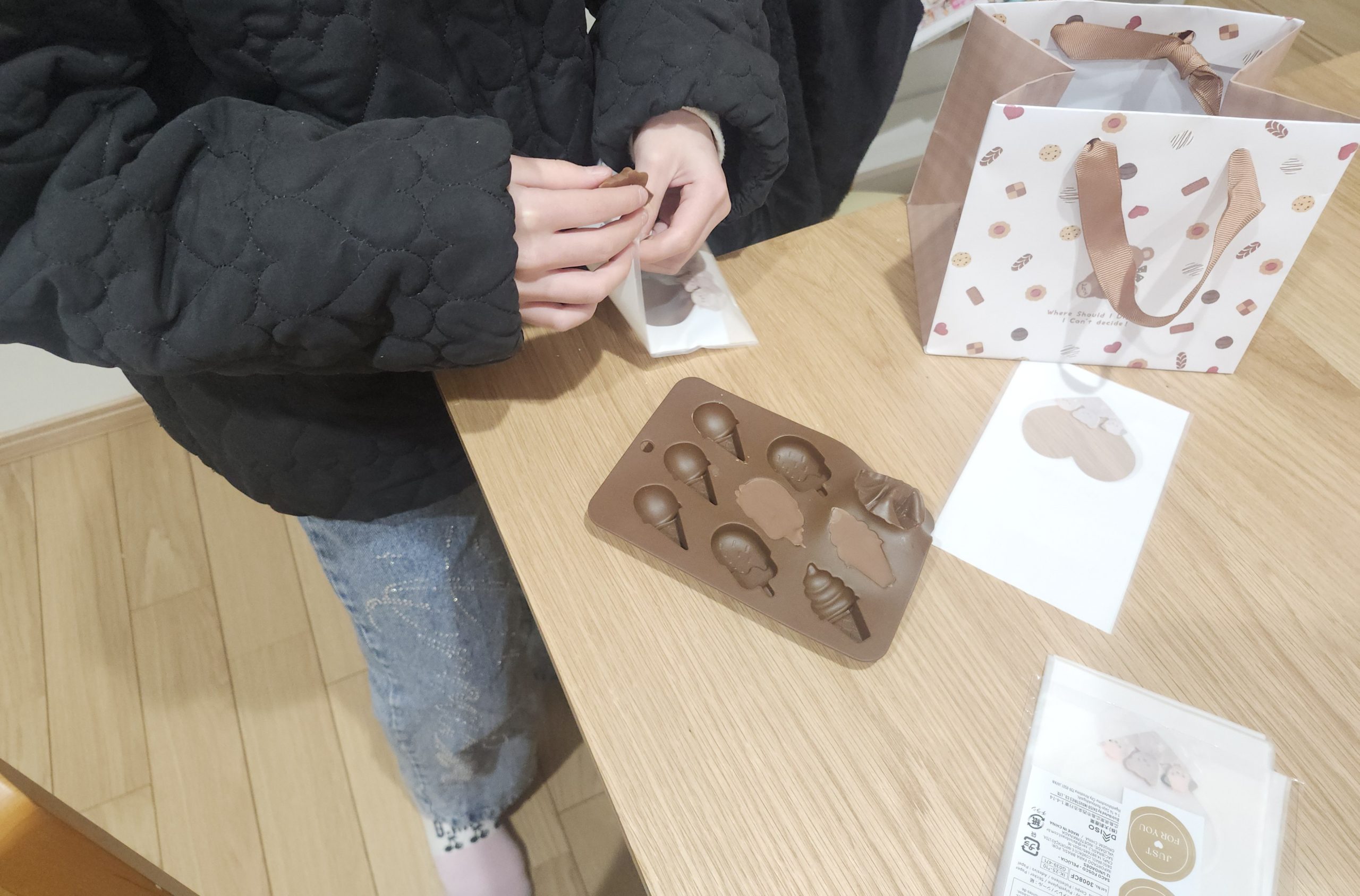 作ることが苦手な子どもたちは、お店のチョコレートを買ってきて、詰め合わせを大好きな職員や友人へ手渡しました🍀